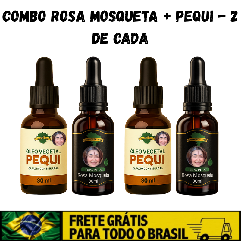 Descubra o poder da natureza com o combo que vai transformar sua rotina de cuidados com a pele e o cabelo. A combinação dos óleos de Rosa Mosqueta e Pequi oferece nutrição profunda, regeneração e brilho natural, em um tratamento completo e 100% vegetal.